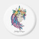 Aimant Unicorne Avec Fleurs sauvages En Aquarelle