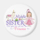 Jolie princesse en rose avec la licorne et grenouille couronnée avec le texte qui dit 'Soeur du Milieu'. A des modèles de grande soeur et de petite soeur assortis.