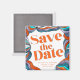 Vous cherchez un mariage rétro-moderne et tendance unique, à l'exception de l'aimant date? Regardez notre rétro Unique Bold Boho Super Retro Wavy Enregistrer l'aimant Date ! Cet aimant à date ondulé présente de belles aquarelles peintes à la main sur des lignes ondulées avec un design abstrait coloré et boho donnant un look unique et tendance, idéal pour un thème mariage rétro.