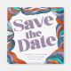 Vous cherchez un mariage rétro-moderne et tendance unique, sauf la date? Regardez notre magnet Super rétro couleur violet d'inspiration rétro Unique Bold Boho ! Cette sauvegarde ondulée présente de belles aquarelles aux lignes ondulées peintes à la main avec un design abstrait coloré et boho donnant un look unique et tendance, idéal pour un thème rétro mariage.
