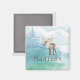 L'illustration de vacances en aquarelle présente l'orignal mignon avec arrière - plan de scène hivernale. Personnalisez avec du texte personnalisable en police marron moderne