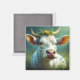 Aimant Vache Ai blanche mignonne avec cornes et fleurs