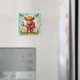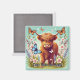 Aimant Vache Highland avec papillons et fleurs printanièr