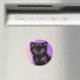 Magnet avec un chat de style Van Gogh avec arrière - plan violet. Ce chaton noir regarde adorablement le spectateur ! Un grand cadeau pour les amoureux de les chats et les collectionneurs d'art hollandais !