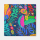 Hawaiian garden, tropical jungle, caribbean parrot, blue yellow, green pink violet, floral foliage, hidden parrot, tropical colors, Virginia Vivier, vagabond folk art, aloha design, indie, modern boho decor, tropical decor.