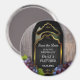 Un arrière - plan rustique s'intègre bien dans un vignoble ou un mariage à thème vinicole. Une bouteille de vin se trouve devant un tonneau de vin rustique patiné avec des raisins à vin et des feuilles autour de celui-ci, sauf l'aimant de date. L'information s'imprime sur le étiquette lui-même. Disponible avec les produits correspondants. com