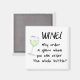 Amusez-vous avec cet aimant ! Idéal aussi pour une entreprise de vin. Un verre de vin blanc est incliné vers le mot texte design qui dit "Vin, pourquoi commander un verre quand vous pouvez commander la bouteille entière?" Trendy, drôle et humoristique, cet art va créer un sourire et des commentaires. Facile à customiser. L'art et le design originaux sont de l'artiste Phyllis Dobbs. Les couleurs sont vert citron vert et noir. Entièrement personnalisable.