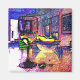 Il s'agit d'un aimant Carré avec une vie morte abstraite d'un verre de vin et d'un bol de citrons. Parfait pour votre frigo !