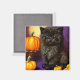 Un aimant avec un chaton d'Halloween vintage ! Un chaton noir moelleux pose à côté des citrouilles contre un arrière - plan violet. Un cadeau amusant pour les fêtes d'Halloween et les amoureux de les chats!