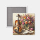 Aquarelle de l'art de l'air représentant un violon penché contre le mur, des partitions et un vase de fleurs en verre.