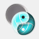 Cet aimant de volleyball yin et yang présente des éléments semi-transparents de yin et de yang qui révèlent un volleyball minimaliste (représenté uniquement par ses coutures en blanc) et un arrière - plan turquoise - personnaliser avec son nom - par katz_d_zynes