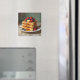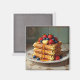 Cute food themed kitchen magnet. An illustration of waffles with strawberries, blueberries, syrup and butter on a pretty antique plate.