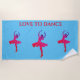 Serviette de plage "LOVE TO DANCE" avec trois danseurs en bleu clair & rose.