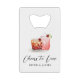 Ajoutez une touche d'élégance à votre fête mariage avec notre ouvre-bouteille "Cheers to Love". Avec ses cocktails d'aquarelle peints à la main, ses coeurs et ses monogrammes de mariage personnalisés, il est parfait pour votre journée spéciale. L'élégant script "Cheers to Love" ajoute une touche romantique, tandis que vos noms et monogramme les rendent uniques à vous. Cet ouvre-bouteille allie art et personnalisation, apportant charme et sophistication à votre célébration ! La faveur parfaite pour trinquer à l'amour et créer des souvenirs durables pour votre journée inoubliable! Conception par © Moodthology Papery