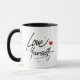 Un élégant mug noir et blanc avec un message de motivation : "Aimez-vous", accentué par un petit coeur rouge. Un rappel parfait pour se soigner avec chaque gorgée de votre boisson préférée.