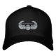 Fits well due to elastic edging, not adjustable. Good qualty material. Good quality embroidering. Subtle lettering (white on beige) just as my wife likes.
