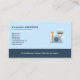 A business card for an air conditioning repair service for technician, installation or maintenance services, repair company or selling household equipment in the field of air conditioning or HVAC. It comes with an illustration of a wrench, a fan and an air conditioning unit on a light blue background with white lines representing air. The reverse side provides complete contact information and a list of services.