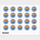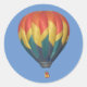 This hot air balloon is named Air Flambe. It's bright colours are displayed on a sky blue background on this sticker.
