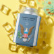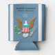 Retired or active duty, this custom can cooler honours your service in the Air Force. And it can be personalized. The emblem is a copy of the Seal of the United States on a blue background with white stripes along the edges (the Air Force colours). Personalize it with a name, along with rank (and "retired" if appropriate) above the ensign. All text is easily edited by using the template. If other changes are desired (different type font, colour, size, placement or to add text) select "personalize" then select "Edit using Design Tool."