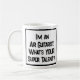Fun gift for someone who plays air guitar. Funny slogan on a Coffee mug that says "I'm an Air Guitarist What's YOUR super talent?". Coffee Mug for an Air Guitarist. Black and white bold text.