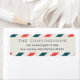Cute vintage air mail style return address labels in ivory feature a top and bottom border of red and blue-green diagonal stripes. Personalize with your return address in deep navy blue.
