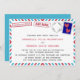 Airmail Destination Wedding In Cyprus Invitations in red white and blue. Easily customizable for you to add your own details. Image of blue stamp with two red hearts. Postmark reads: Our Sweet True Love. Each invite comes complete with a white envelope.