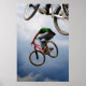 Two BMX bikers high up in the air. Some motion blur on both bikers.