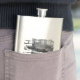 The product is a good size and came exactly as it was pictured. The lid is not attached to the flask, which could be dangerous on drunken nights... The print came out surprisingly well and looks very sharp. Would definitely recommend.