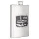 The product is a good size and came exactly as it was pictured.  The lid is not attached to the flask, which could be dangerous on drunken nights... The print came out surprisingly well and looks very sharp.  Would definitely recommend.