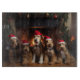 An enchanting scene captures the essence of coziness and holiday spirit as furry companions adorned in Santa Claus hats gather around a crackling fireplace. The warmth emanating from the hearth creates a snug atmosphere for these adorable canines, while festive stockings hang in the background, enhancing the merry ambiance. The charming illustration portrays a timeless image of companionship and festive joy, perfect for celebrating the holiday season with a touch of canine charm.