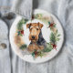 Airedale Christmas Wreath Festive Pup 6 Inch Round Button