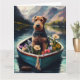 Airedale Dog on a Paddle: A Scenic Adventure Card