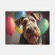 An Airedale dog with balloons birthday design is a fun and whimsical way to celebrate a special occasion with a dog lover's furry friend. This design typically features an Airedale terrier dog with a festive birthday hat and surrounded by colourful and cheerful balloons.