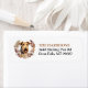 The left side of these return address labels feature a portrait of an Airedale Terrier dog. The image is enclosed within a pretty autumn floral and leaf wreath in tones of brown, tan, and cream. Your custom text is in black and gold brown at the right.