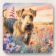 Airedale Terrier Dog in a Wildflower Meadow Coaster