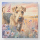 Airedale Terrier Dog in a Wildflower Meadow Stone Coaster