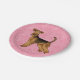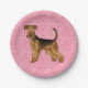 Airedale Terrier Dog Love With Pink Heart Pattern Paper Plate
