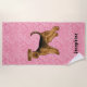 Airedale Terrier Dog With Pink Hearts And Name Beach Towel