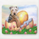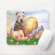 Celebrate Easter with this Airedale Terrier hatching from a coloured egg with coordinating tulips growing all around.