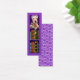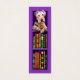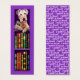 I WUFF to Read! is on the back side of this book mark while a sweet Airedale Terrier pokes his head through a bookshelf with books on the front.