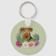 Airedale Terrier With Colourful Flowers And Name Keychain