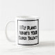 Funny slogan on a mug that says "I fly planes. what's YOUR super talent?". Mug for an Airline Pilot. Black and white bold text.
