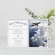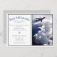 Your world traveller son is having his Bar Mitzvah, so you need the perfect themed appropriate invitations. These proper invitations display an overhead view of the clouds from an airplane with a silhouette airplane illustration. Your Bar Mitzvah details are custom printed on the left side in grey and navy blue.