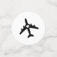 Romantic travel theme oversized table confetti perfect for a destination wedding or travel theme bridal shower, engagement party or reception celebration features a faux gold jet plane with a heart in the centre on a black and white background.