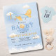 Blue Gold Airplane Clouds Stars,Cute Baby Shower Invitation.