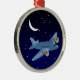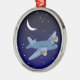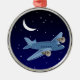 Airplane flying at night with moon & stars. Pilot Metal Ornament