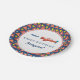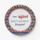 Modern, cute personalized birthday party plates, featuring a fun airplane and geometric design.