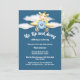 A cute illustration of a giraffe wearing aviation glasses on his head flying a plane through fluffy white clouds. The front and back are a pretty bue and both sides have custom templates to add your custom wording at no extra charge. These are ideal for a baby shower or birthday as the templates may be personalized to suit your special occasion.