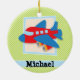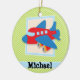 Airplane on Lime Green & White Stripes Ceramic Ornament