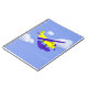 Notebook with a whimsical yellow and blue airplane flying in the cloudy sky, created with construction paper and manipulated in Photoshop by KLeighE of Hinterland Harmony’s Whimsical Cartoon Art ™